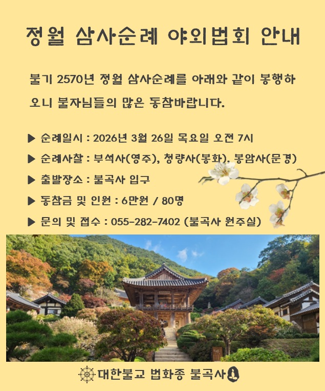 불기 2570년 정월 관음·화엄기도 … 2월 18일(수) 정월 관음·화엄기도 대법회 입재를 봉행하였습니다.저희 불곡사에서…