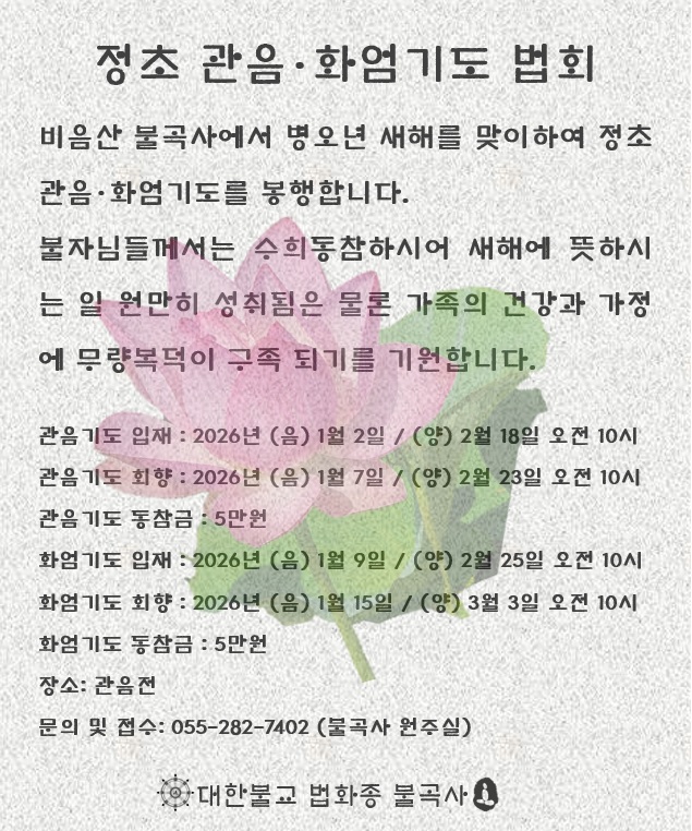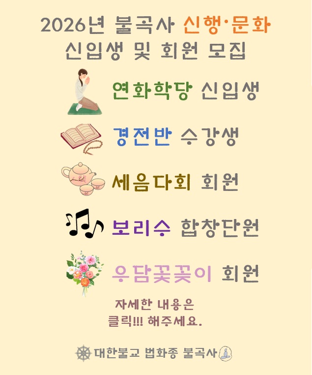 2026년 병오년 신년통알법회 2026년 병오년 새해를 맞이하여 신년통알법회를 봉행하였습니다.이번 법회는 불곡사…